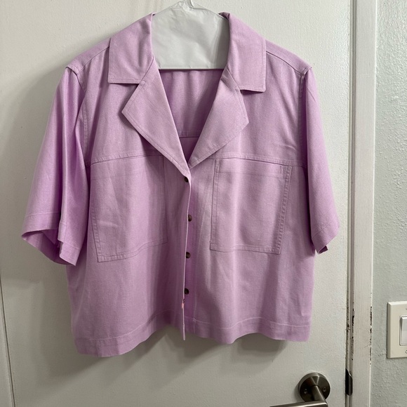 Lavender/Purple button down. It’s a bit boxy but super cute!