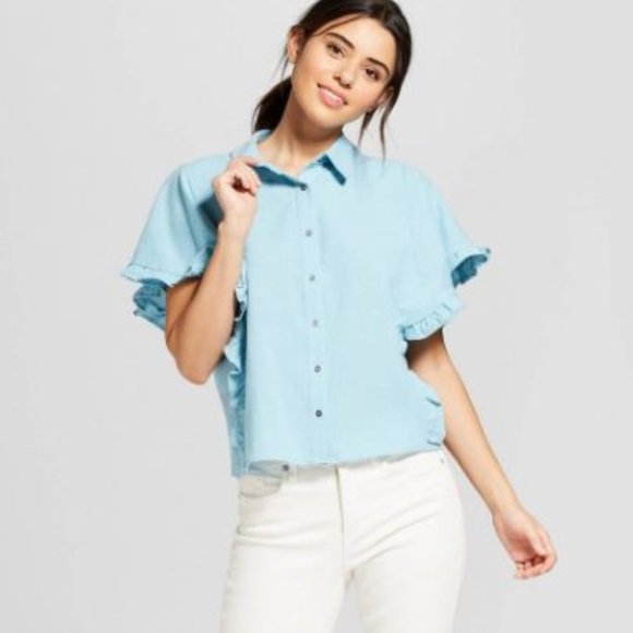Universal Thread Button Front Ruffle Top