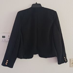 Features a front button-down style, round neckline, cropped length, pockets, fully lined, button cuff, tailored in casual fit, Bust 21"