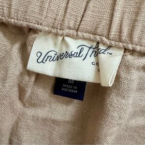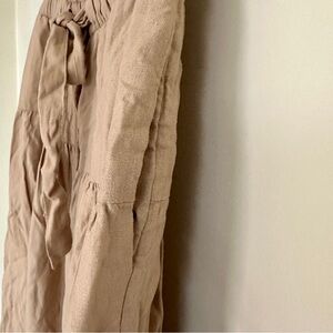 Universal Thread tan, button-front midi skirt with pockets. Elastic waistband with tie detail. Size medium.
