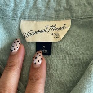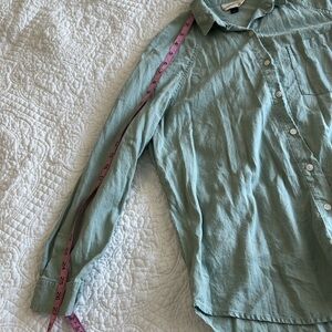 Casual green button-up shirt. Perfect for everyday wear. Shirt will need to be ironed or steamed