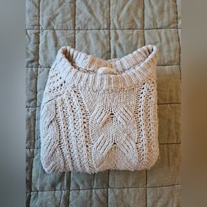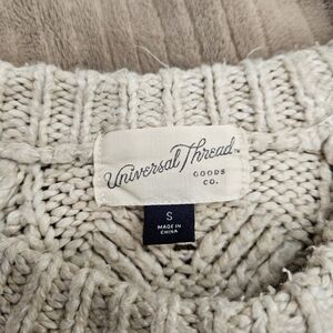 Universal Thread cream cable knit sweater. Great for casual outings. It is cropped and looks great with leggings or jeans. The sleeves flair out in a unique but comfortable way.