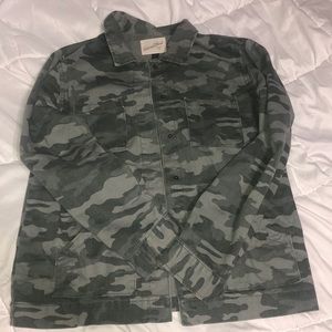 Universal Thread camo jacket. Size small (4-6) — fits a little oversized! Bought a few months ago and only worn a few times. Snap buttons all the way down front and one snap on each cuff of the sleeve. Four pockets. Super comfy! Perfect for spring or fall!