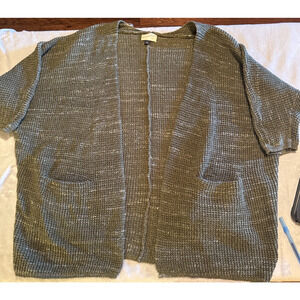 Universal Thread Cardigan olive green waffle knit boxy open front pockets sz M