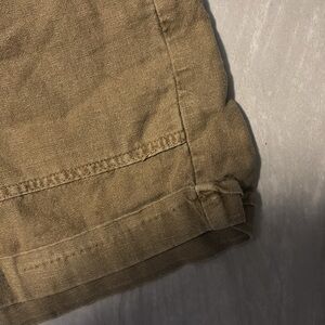 In perfect used condition. Only worn a few times. Elastic waistband with adjustable waist tie. I would describe the color as a light army green
