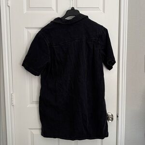 Chic charcoal denim shirt dress with button-up design. Features classic collar and durable fabric. Worn once, excellent condition.