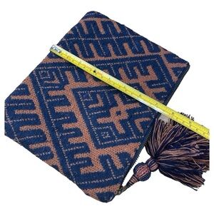 Zip closure has cute beaded tassel. You can use this as a purse, makeup bag, or travel.