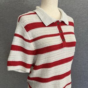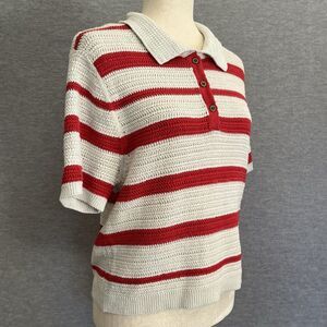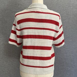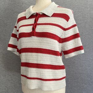 Universal Thread Coastal Preppy Crochet Knit Top Size Medium Red Cream Striped Beachy Tenniscore