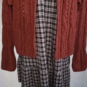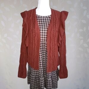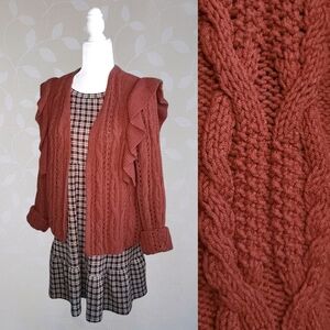 Universal Thread Cottagecore Cable Knit Ruffle Detail Open Front Cardigan Rust