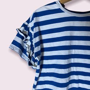 Universal Thread Cotton Blue White Stripe Short Sleeve Ruffle Tee Blouse
