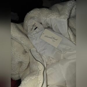 Keep yourself ready for cooler days with the Faux-Shearling Coat from Universal Thread. This long-sleeve coat in a cream hue features a collared neckline and a drop-shoulder design for a classic look. It comes with side pockets to help stash away small items or keep your hands warm, and the mid length and front full-length zipper allow for easy layering.
