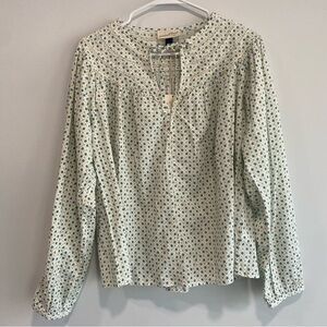 Universal Thread Cream Floral Balloon Sleeve Pullover Top Front Ties Size S