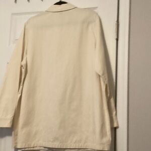 Stylish cream jean jacket by Universal Thread. Features button closure and front pockets. Ideal for casual wear.