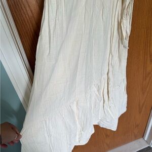 Embrace casual elegance with this cream sundress from Universal Thread, featuring a flattering V-neckline and a tie front for added shape. The peasant hemline and sleeveless flutter sleeves make it perfect for resort wear, offering a relaxed yet stylish look. Gently used, excellent condition!