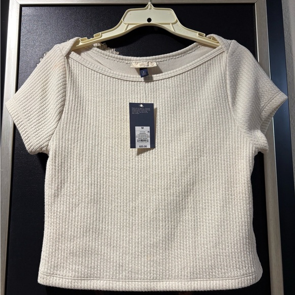Universal Thread Cream Ribbed Short Sleeve Top