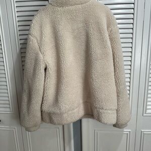 Soft and warm teddy jacket. Features zip closure and pockets. Ideal for cool weather.size medium good condition