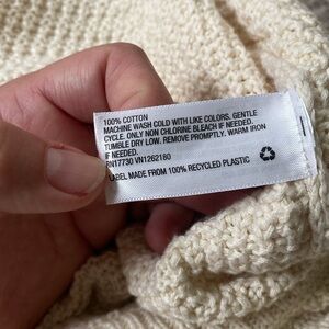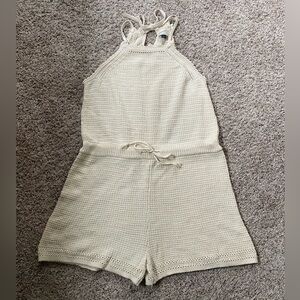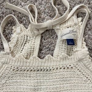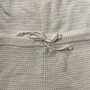 Wore only once. In excellent, like new condition. Size large. Ivory/cream color. Sweater material. Tie in the back. Adjustable waist tie. 100% cotton