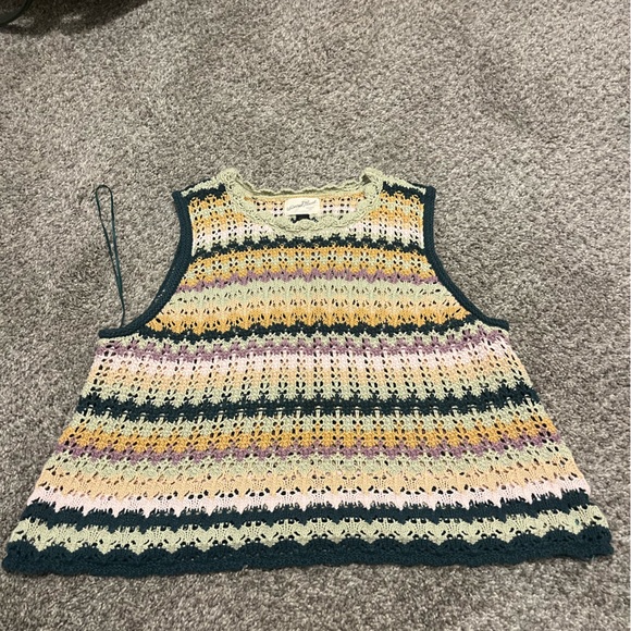 Vibrant crochet top with striped design. Very comfortable and despite being crochet not super see through.
