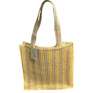 Universal Thread Crochet Woven Handbag Yellow Beige Tote Single Compartment