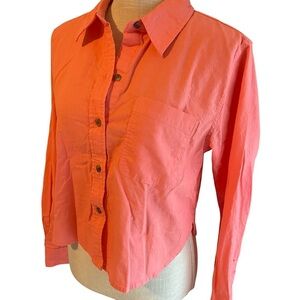 Perfect condition, worn one time. Beautiful orange/pink color. Trendy cropped fit. Great with wide leg pants.