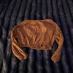 Universal Thread Cropped Ruffle-Hem Blouse - Rust Brown