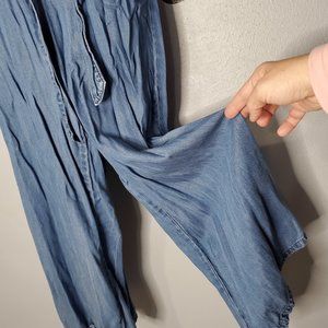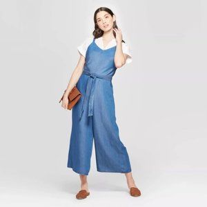 Universal Thread Cropped Wide Leg Denim Chambray Jumpsuit, XS