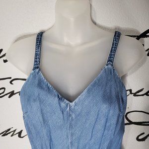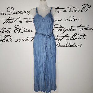 Universal Thread Cropped Wide Leg Denim Chambray Jumpsuit with Spaghetti Straps