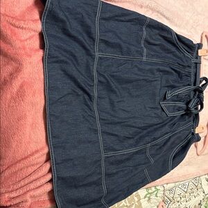 Chic dark blue A-line skirt with tie waist. Perfect for versatile styling.