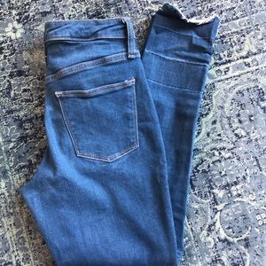 Medium wash denim with raw edge detailing in excellent condition from a smoke and pet free home.