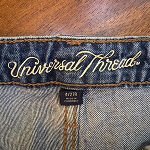 Stylish denim shorts with frayed edges. Features classic pockets and button closure. Ideal for casual outings.