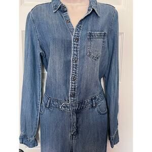 Universal Thread denim jumpsuit - So cute on! It's a lightweight denim, medium blue color, cuffed hem, long sleeves, and button up. Pockets all around and would look so cute with a belt!