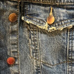 Stylish dark blue jean jacket. Features gold embellishments button closure, waist pockets, and chest pockets. Ideal for casual wear. Pick up in Gurnee, IL or shipping. Smoke free home. Check out my other listings and ask for discounts on multiples! Offers encouraged.