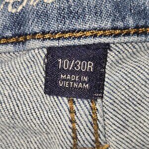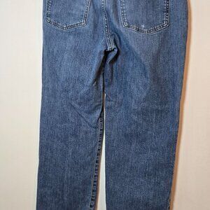 Universal Thread “Drake” Vintage Straight Leg Jeans in a timeless medium wash. Size 10 Regular. Features a flattering 10” high rise, cropped 24” inseam, and raw hem for a laid-back vintage look. Classic 5-pocket design with button and zip fly closure. Versatile and easy to style with tees, blouses, or sweaters.
