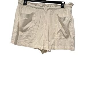 Stylish white shorts with a drawstring waist. Perfect for casual outings. Excellent used condition! These shorts are more of an “off white” than a true white.