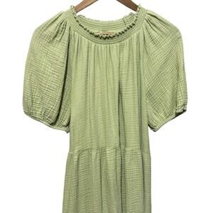 Universal Thread Dress 2X Green Puff Sleeve Gauzy Tier Boho Cowgirl Western