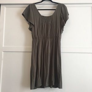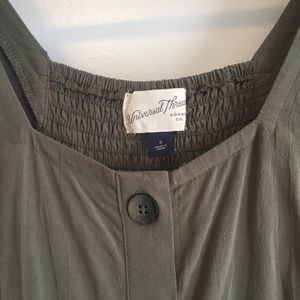 In new like condition. Size small but could fit a medium comfortably. About knee length dress (I’m 5’3”). More of a forest green color than the pictures show. Brown/ black buttons.