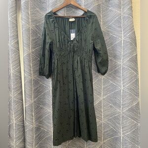 Beautiful green dress with floral detail. NWT 55% linen 45% rayon