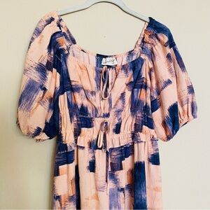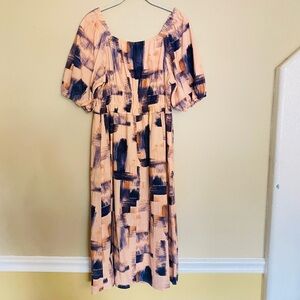 Universal Thread Dress Womens Small Pink/Peach Purple Blue Puff Sleeve Midi Dress