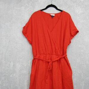 Universal Thread Red Faux Wrap Dress Womens Midi Dress XXL Pockets Cotton Blend