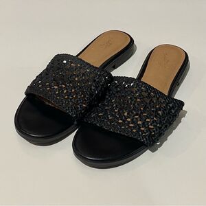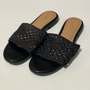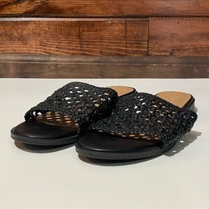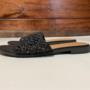 Universal Thread Ellen Black Woven Faux Leather Flat Slide Sandals Women's 6.5