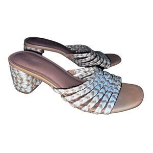 Universal Thread Espadrilla Slip On Sandals 2.75" Block Heel Sz 8 Womens Beige W