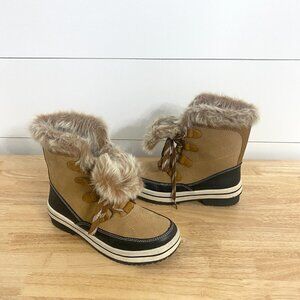 Universal Thread Faux Fur Lace Up Winter Boots, Womens Size 6