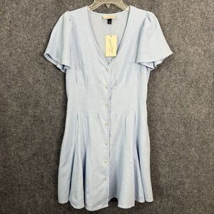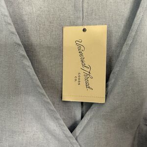 The Universal Thread Fit & Flare Button Front Dress is a stylish and versatile option for women looking for a casual or business attire. Made from lightweight linen with a flared sleeve and V-neckline, this short dress in a solid blue color is perfect for the summer, fall, and spring seasons. The button front closure and hand wash care instructions add to its unique features, making it a must-have addition to any wardrobe.
