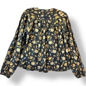 Keywords: floral blouse, long sleeve top, womens blouse, black yellow blouse, universal thread, floral print top, v neck blouse, casual blouse, bohemian style, womens fashion, lightweight blouse, button cuff, comfortable top