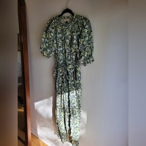 Charming floral top with button-down front. Features a blend of green and blue hues.
