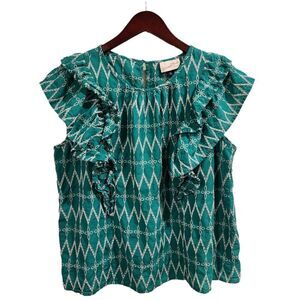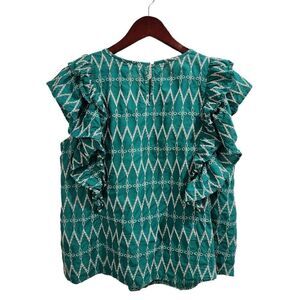 Universal Thread Flounce Embroidered Ruffle Blouse Green XXL Women's Top