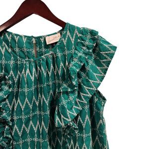 Universal Thread Flounce Embroidered Ruffle Blouse Green XXL Women's