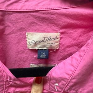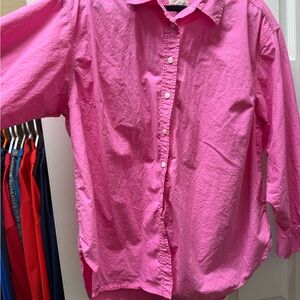 Fuchsia button-up shirt with a classic collar. Ideal for versatile styling.