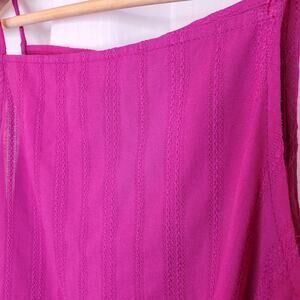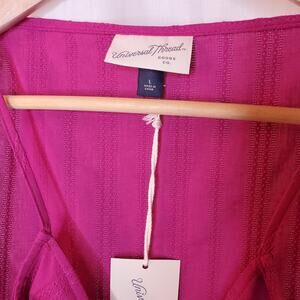 Universal Thread Fuscia Tank - NWT. Size large 100% cotton tank has narrow spaghetti straps and elastic in waist for a blouson look. Great with shorts for a casual day or would work great under a jacket or sweater for work. Subtle striping in the fabric. New with tags.
