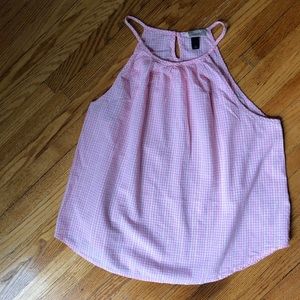 Pink & white gingham sleeveless blouse measure Bust 20” & Length 22 1/2”. EUC